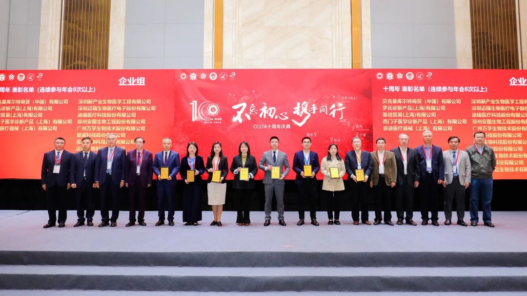 大會(huì )期間,中國醫學(xué)裝備協(xié)會(huì )檢驗醫學(xué)分會(huì )第三屆委員會(huì )第三次全體委員會(huì )議同步召開(kāi),九強生物董事長(cháng)鄒左軍先生出席并上臺領(lǐng)取十周年企業(yè)感謝狀。CCLTA迎來(lái)十周年,在深耕學(xué)術(shù)、以發(fā)展為中心的精耕理念下,實(shí)現檢驗醫學(xué)事業(yè)的大步拓新。